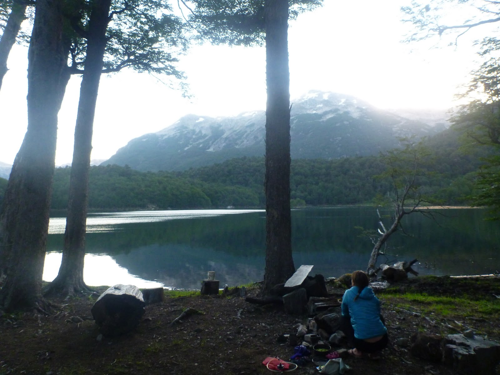 While Shelley was sipping “dirty bananas” on the beach at her brother’s wedding, Sarah and I spent the last two weeks sipping homebrews throughout the hut (“refugio”) system surrounding El Bolson. Along with their many perks (homebrews, homemade bread, tarts, pizza, actual trails) came some unanticipated hurdles such as having to register at each refugio so they can keep tabs on you and abiding by specific hiking schedules. As a result of our recent bouts with flexibility, we’ve developed a new mantra- as we’re taking off on the trail at an unplanned hour, stopping for lunch at 4pm, or waking up at 10am, we’ll exclaim, “right on time!”.